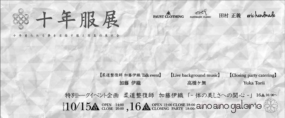 来る10/15-16東京の大塚で合同展示会”十年服展”を開催いたします♡